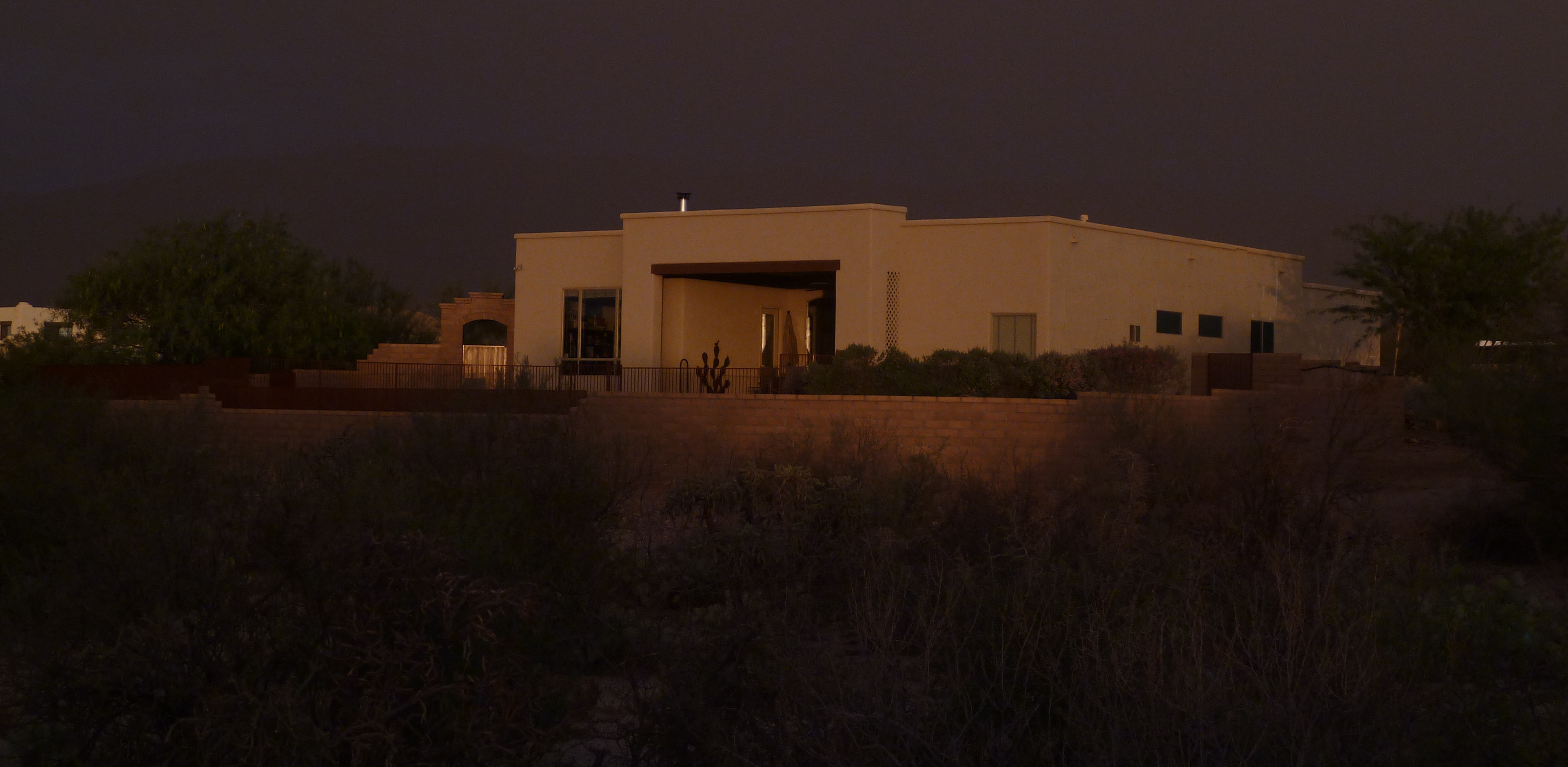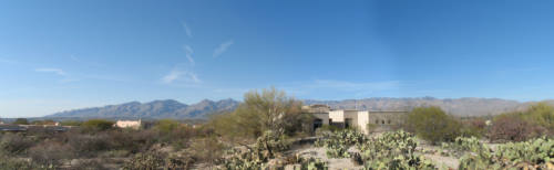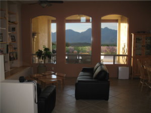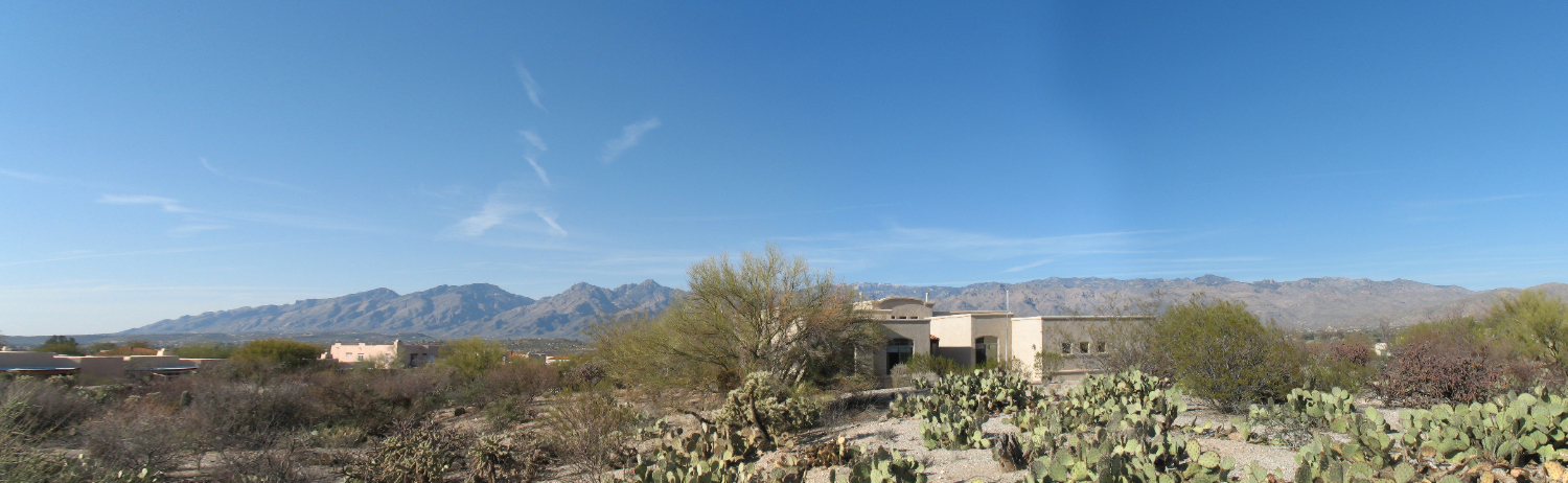 Our house, just right of center in the picture below, is nestled within the desert flora. Yep, that's real cactus there. Our home is on an acre+ lot on the outskirts of Tucson where the rabbits, quail, coyotes, and Javelina come to visit frequently. Did I mention that the guest room is isolated from the rest of the rooms and overlooks the desert?