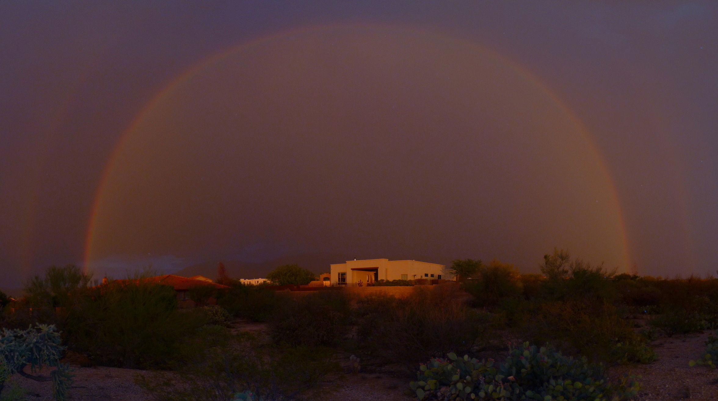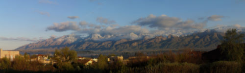 Each morning a new panorama is revealed to us from the living room window. The picture below is one taken from just outside the living room on our patio in early March. A storm had just passed leaving the Catalina Mountains dressed in rugged clouds and topped with new fallen snow.